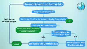 O processo começa com uma autoavaliação, feita por meio da Planilha ESG (RQ-254), que ajuda a organização a entender seu estágio atual e planejar melhorias. Após a realização da auditoria e resolução de possíveis não conformidades, é emitido um certificado com validade de 3 anos.